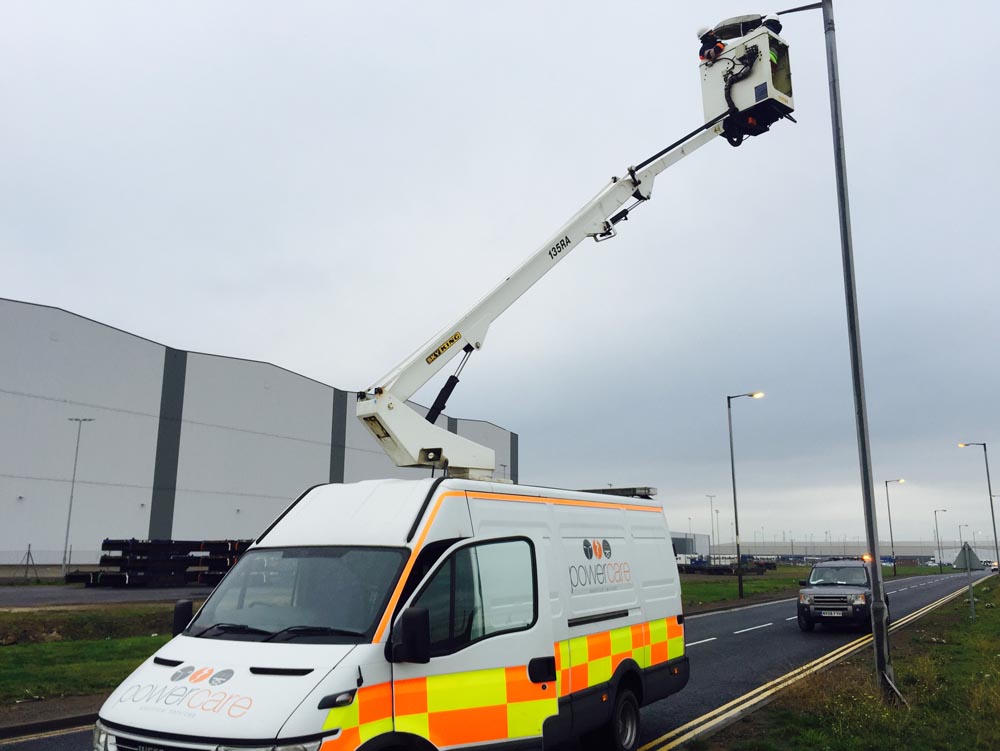 Powercare has a team of electricians working almost constantly on high level lighting masts from climb up towers through to lower-able head frames, tall masts and lighting columns accessed by access platforms. We maintain various industrial, commercial and retail sites across the U.K. and deal with all types of lamps and control equipment. We provide these services to Sea Ports, Airports, supermarkets, hospitals and schools.